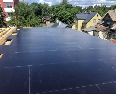 2018 – Eramu, Monieri kivikatuse paigaldus koos roovi ja aluskattega, vihmaveesüsteemid, katuseredel, lumetõkked, 285 m2